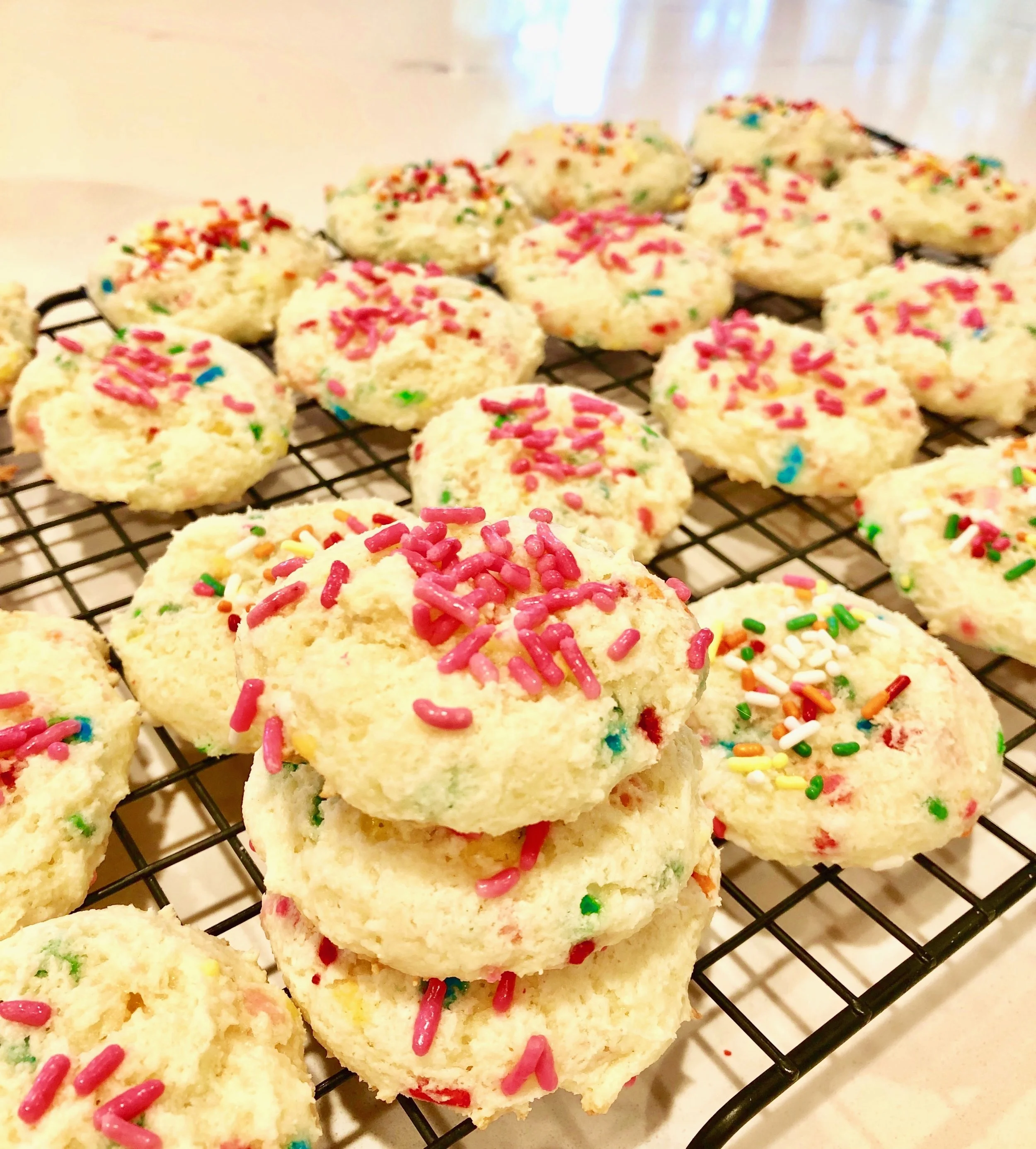 My granddaughters love sprinkles and Funfetti cake! I have made many varieties of cookies using cake mixes, so decided I would try Funfetti! Cookies. Whenever I get together with my granddaughters… we bake. Cookies are always our favorite treats too... Easy, as they don’t requirea lot of measuring and guaranteed to turn out yummy! Perfect cookies for our tea parties too! Grab your cake mix and let’s bake!!
